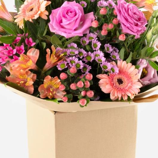 A warm, glowing mix of pink and peach blooms — the perfect floral pick-me-up.